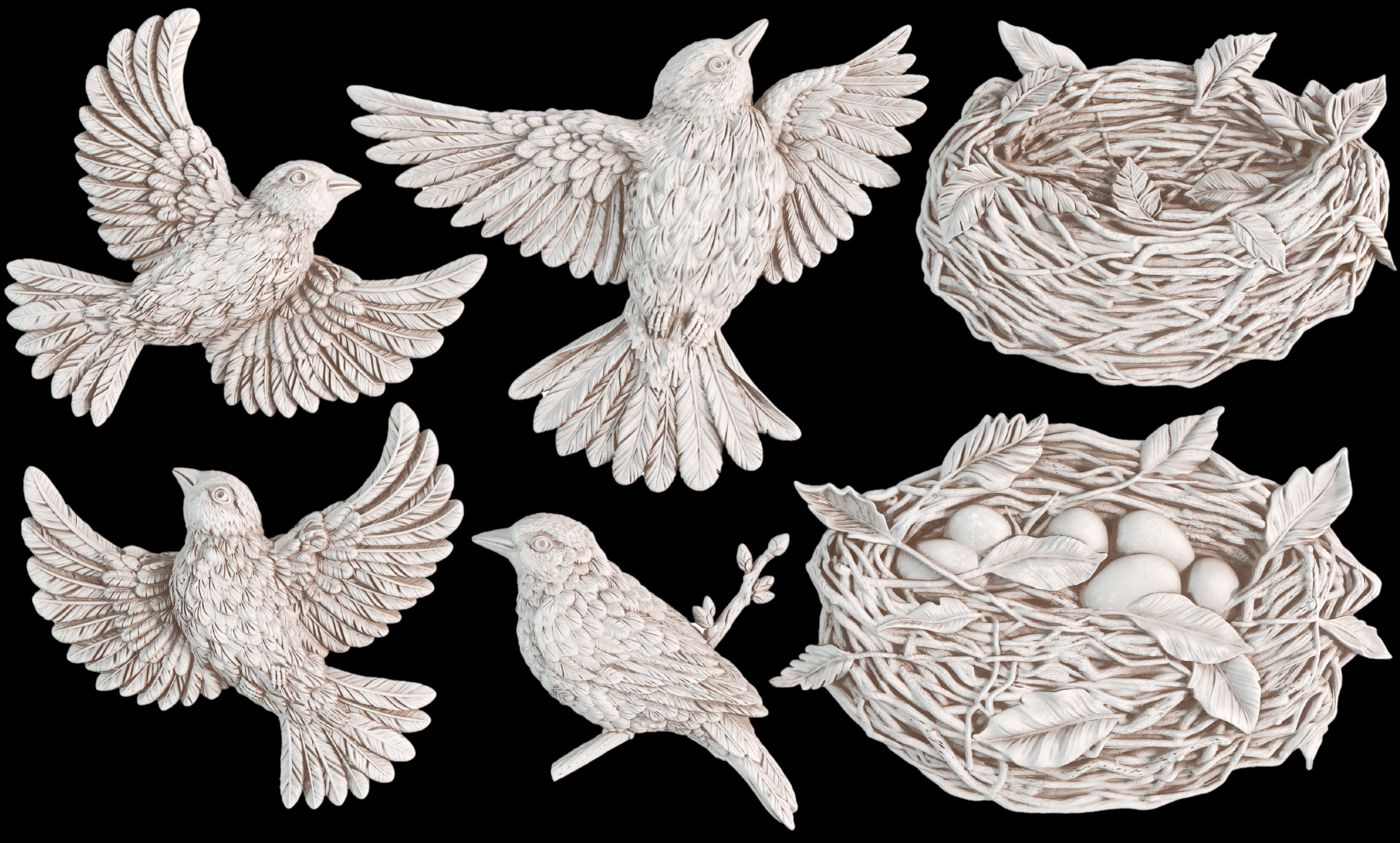 Introducing Sparrow’s Nest, a whimsical and cheerful mould that celebrates the sweet freshness of Spring. Fanciful Robin’s nests with eggs, and graceful birds in flight, each with beautifully spanned, intricately delicate wings that add that classic IOD detail to your projects.