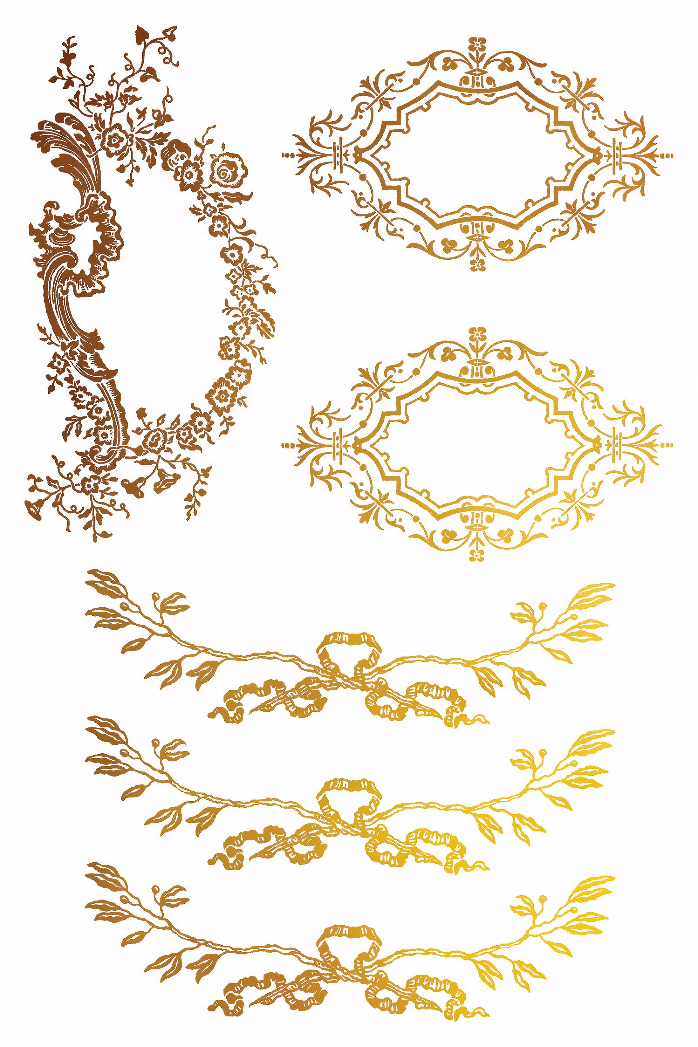 IOD Petits Ornements Gilded Foil Decor Transfer by Iron Orchid Designs is a beautiful and sophisticated gilded transfer. These classical elements are inspired by vintage European ornamentation, filled with intricate details that will look scrumptious adorning any of your thrifted decor projects!